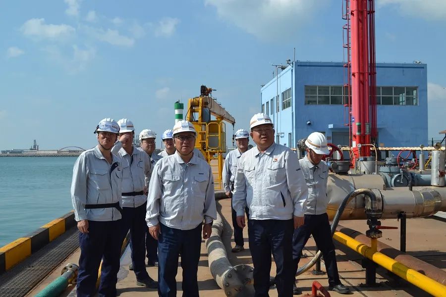 在海湾港务,李明一行到海湾港务1#泊位现场,听取安全生产、节日安全生产安排等有关情况汇报,检查船舶安全管控、节日安全管控措施落实等情况,并对大家节日期间坚守岗位、辛勤工作表示感谢。