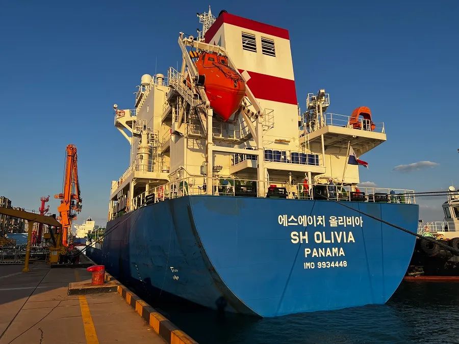 在海湾港务港口,装载原料的大船接连到港,泊位作业紧张有序进行。1日16:50,运载3492.961 吨乙烯的“雁顺”轮顺利靠泊。2日15:00,经过一天一夜的作业,“雁顺”轮刚刚解缆离泊,来自韩国瑞山港的“橄榄树”轮运载着5724.172吨苯就向码头驶来。调度与引水员密切配合,精准定位,引导“橄榄树”轮于17:00顺利靠泊,现场人员立即开启新一轮的接卸工作。