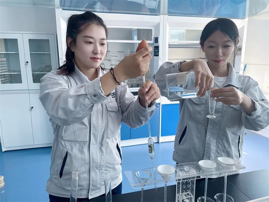 海湾化学员工假期严格分析指标,把好产品质量关。丁辉华 摄
