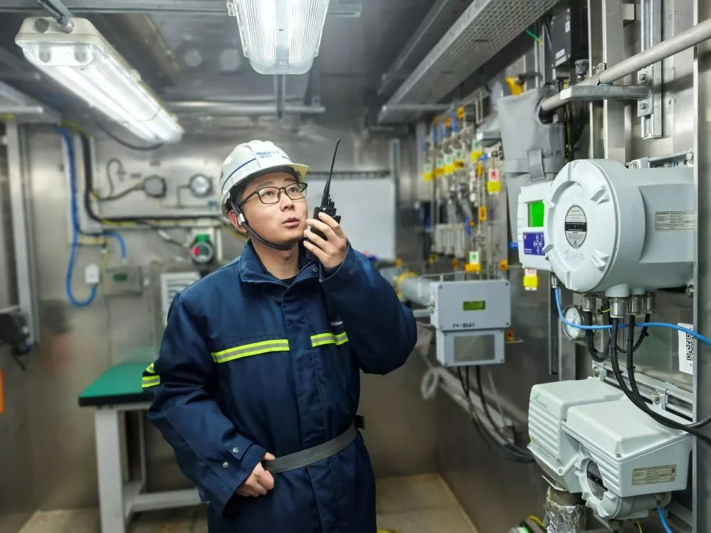 大年初二13:50,薛彦珅接到工艺下达的调整分析仪的指令,他第一时间带领班组人员完成处置,确保了生产稳定。“已调整完流量,请注意观察。”薛彦珅在分析小屋用对讲机回复道。