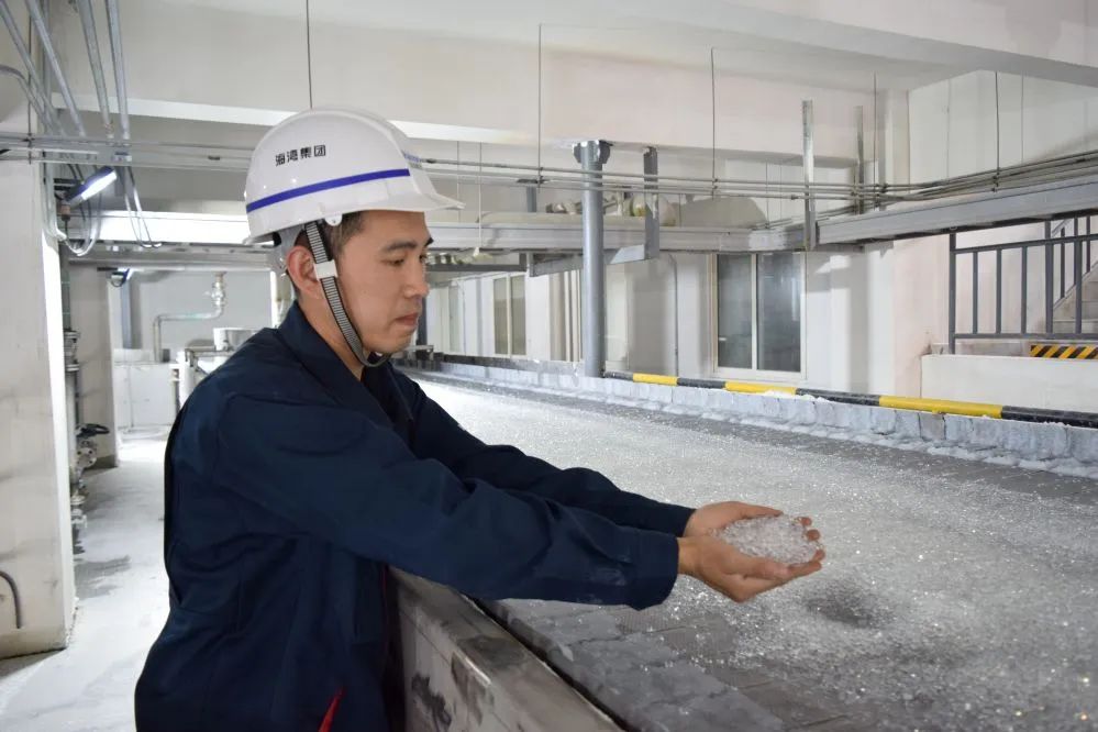 大年初一早上8点刚过,海湾精化硅胶厂工段长孙金龙便和往常一样,一开完班前会便立刻来到生产现场,详细了解生产、设备运行状况后,他对需要注意的关键环节又做了重点强调:“烘干网带出口水分较高,DCS注意一下烘干网带各个风机的出口温度,及时与现场岗位沟通保证产品水分合格”;“负责捞胶的同事要注意,请按照标准流程进行操作,确保产品质量。”