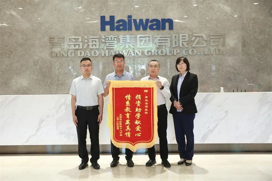 5月27日,店埠镇党委委员迟洪江,店埠镇中心中学党总支书记、校长于海广,店埠镇中心小学校长李旭杰、姜山镇大河头小学校长全启训一行4人来到海湾集团赠送锦旗,向集团给予的帮扶助力表示由衷的感谢。