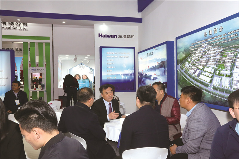 展会上,海湾精化展示了以苯胺黑系列、尤丽特系列、中性染料、碱性染料、尤丽素系列和分散染料为主的染料产品,以及以双乙烯酮系列、二乙芳胺系列和吡唑酮系列为主的化工及医药中间体产品。期间,赵秀平围绕染料产业的发展趋势、市场推广、产品营销及技术创新等内容与客户进行深入的沟通,进一步加强行业之间的交流与合作。