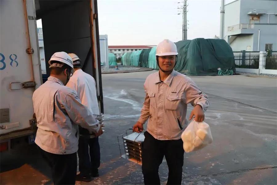 硫酸钾厂操作室的电话照例响起,甲班的张文刚师傅赶忙接起电话,一秒钟之后,他连忙召集同事,“晚饭来了,快下去搭把手。”