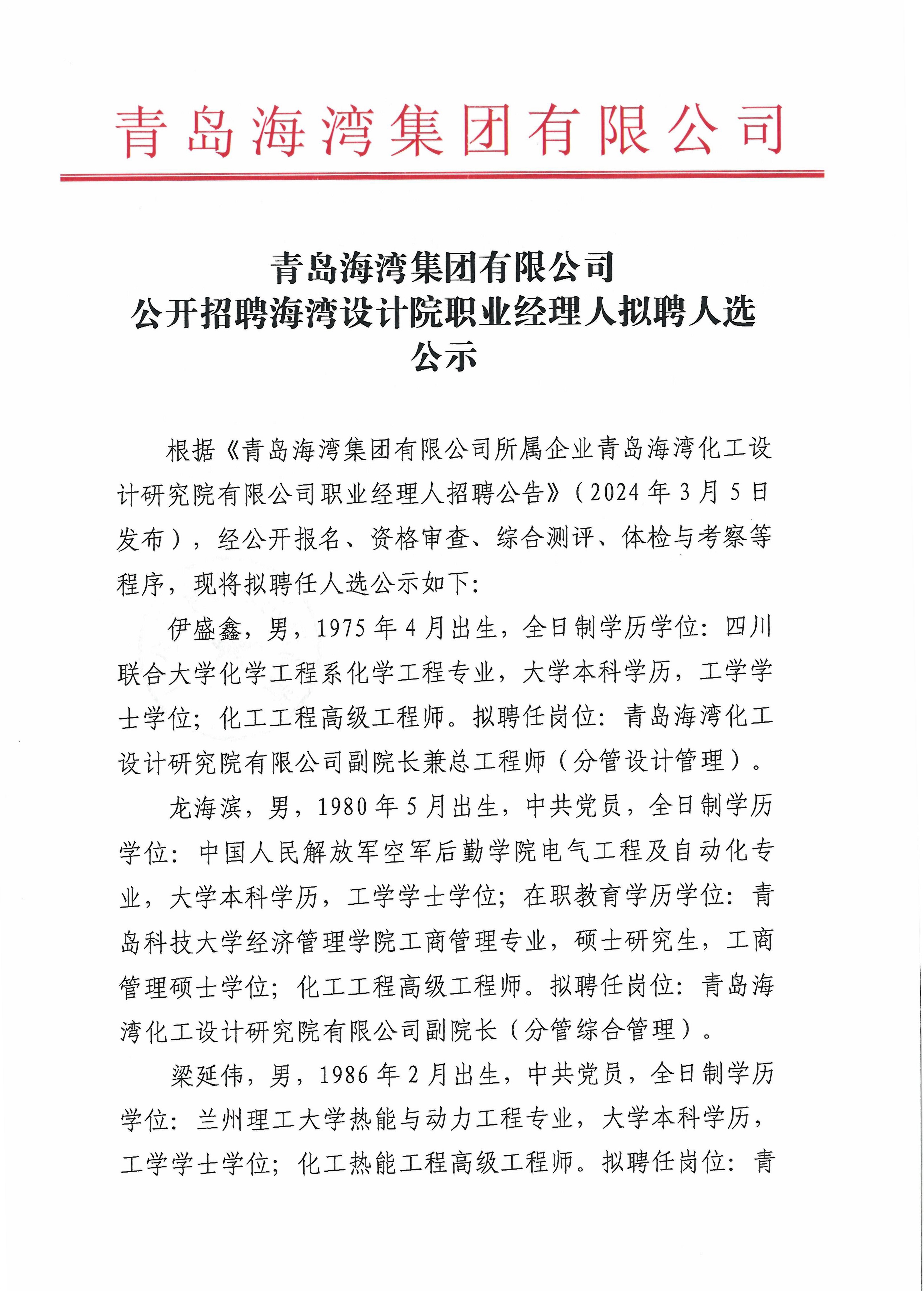 顶 乐鱼球赛公开招聘海湾设计院职业经理人拟聘人选公示