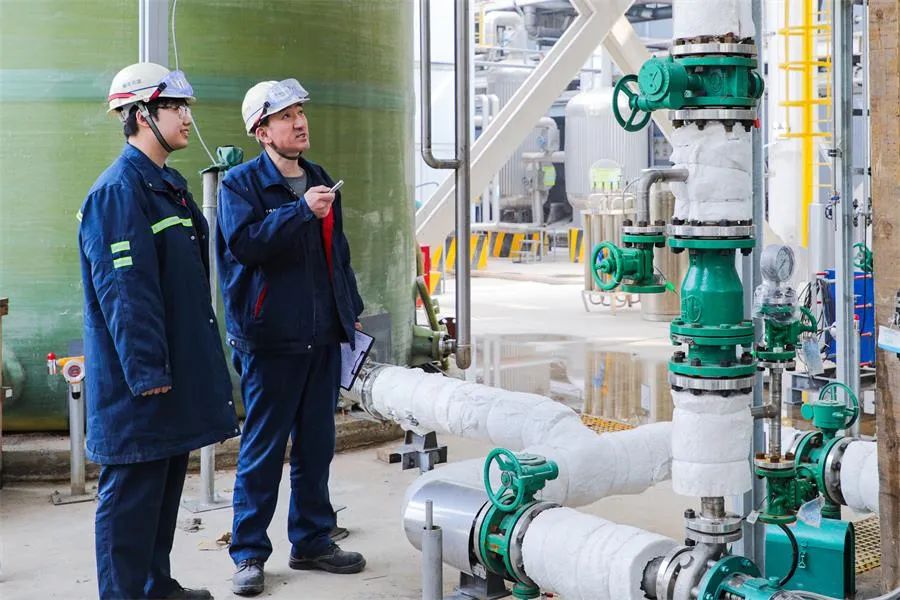 此外,班组持之以恒抓“三基三纪”,不断提升职工精细化操作水平,同时采用自动化、数字化控制手段进行实时监测、精准预判,确保每一张离子膜的运行指标稳定、使用状态最优。2024年,离子膜法烧碱≥30.0%的吨烧碱综合能耗为283.1kgce/t,较上一年度减少3.69kgce/t,连续四年稳居同行业榜首;2.01m³/t的吨烧碱取水量首次将烧碱生产企业的水效“领跑者”第一名收入囊中;更难能可贵的是,在电解全体职工的精细操作、通力协作下,核心设备离子膜电解槽已安全高效运行超8年有余,远超同行业4年的使用寿命。