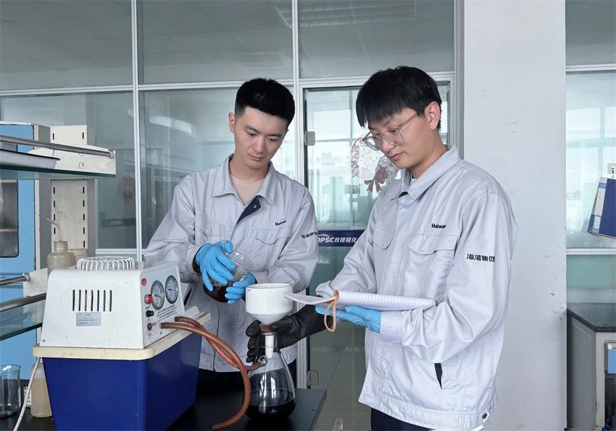 暮色四合,海湾精化生产厂区灯火通明。实验室内,染料三厂技术员潘志强正专注地盯着油黑NL缩合反应数据变化。对于油黑NL产品而言,可磁化铁的质量指标是其迈向高端市场的关键门槛,更是产品升级迭代的核心竞争力所在。