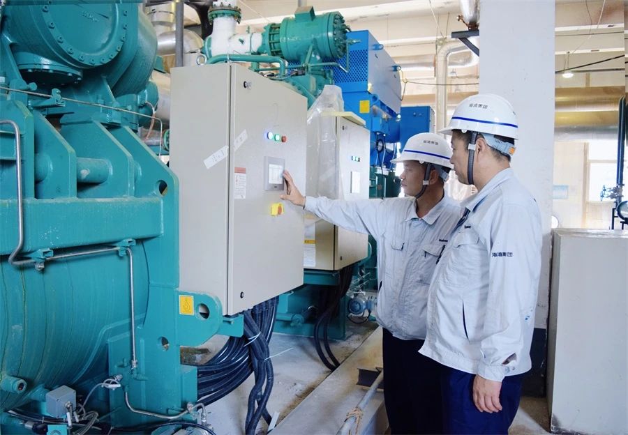 海湾精化冷冻机组升级扩改项目,通过技术升级方式优化企业现有冷冻系统效能,实现浅冷、深冷分类分段优化供给,可有效解决现有生产短板,保障生产连续稳定运行。历经近10天的连续奋战,冷冻一期机组改造、新上冷冻机组项目顺利开机运行,供回水温度、压力等各项运行指标均达到预期效果。