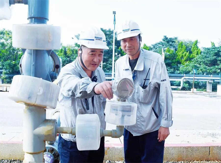 “今天的重点是设备巡检。姜磊磊,咱俩去维护管道除铁器。”10月2日7:30,海湾精化染料三厂工段长何虎有条不紊地布置当天的工作。安排妥当后,他向大家道了声:“国庆快乐。”这声祝福给忙碌的清晨添了份节日的喜庆。