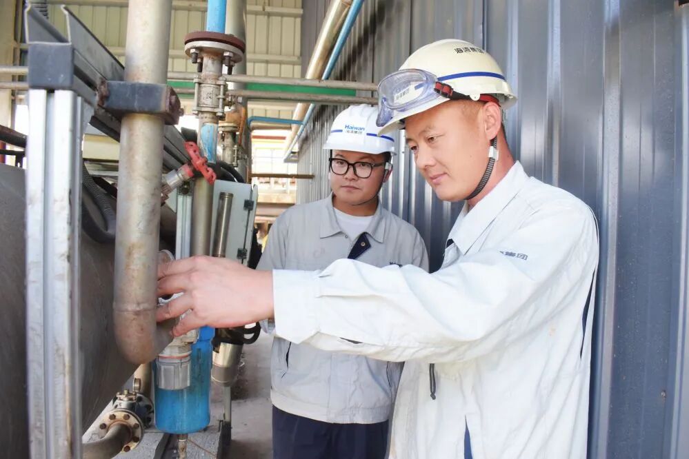 接到指令后,班长谭业太半蹲在泵前,耳朵贴近设备外壳,"这个泵的转速和平时不一样!"他的声音在机器轰鸣中格外沉稳,"可能是结晶物堵塞,建议立即切换备用泵。"拆检证实了他的判断,大家在最短的时间内将备用泵换上,做到无缝衔接。