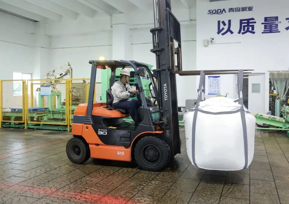 车间现场,外操王呈与宿子智师傅正在配合进行料仓巡检。王师傅推着载有测温仪和扳手的巡检小车,按照巡检清单,每隔几步便停驻,将测温仪贴向仓壁······“包装班长窦吉荣师傅手持对讲机,始终保持与中控室的联络。听到中控发出的“料位接近上限”的提示,他迅速打开卸料阀,白色的氯化钙颗粒沿管道缓缓流入仓中。