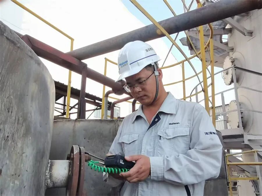 海湾精化化工一厂技术人员正在对现场的压差式过滤器进行压力巡检。呼扬春晖 摄