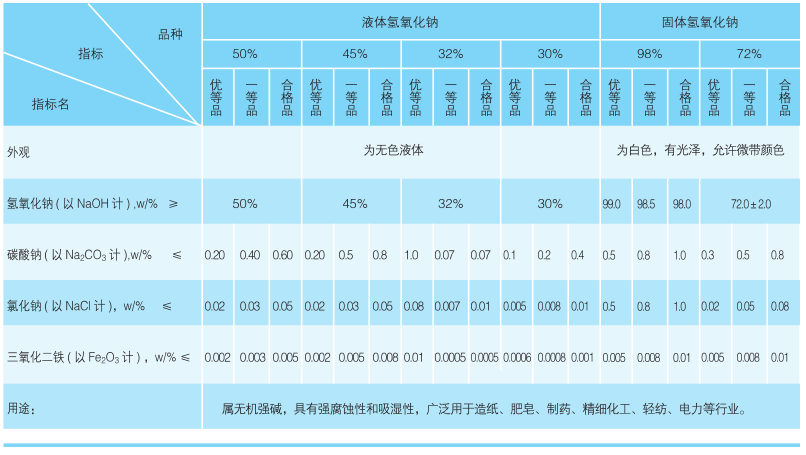 属无机强碱,易溶于水,溶于乙醇和甘油,不溶于丙醇、乙醚,另有潮解性;与氯、溴、碘等卤素发生歧化反应,与酸类发生中和反应。